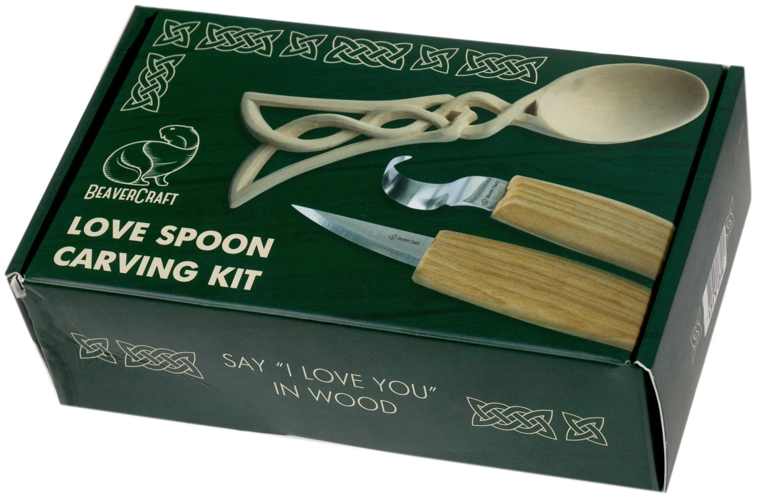 Este BeaverCraft Celt Love Spoon Carving Hobby Kit DIY04 es un set para el tallador de madera aficionado. Contiene todo lo necesario para iniciarse en la talla de madera. Un cuchillo versátil para tallar madera, cuchillo v (diestro), madera de tilo, ar e incluso las instrucciones para empezar con éxito.