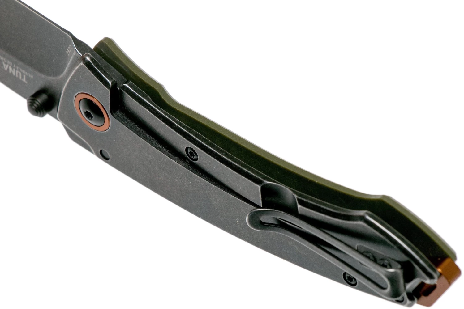 La CRKT Tuna 2520 es una navaja EDC genial y práctica, diseñada por Lucas Burnley. Cuando observas su forma, notarás algo de forma inmediata: este cuchillo fue construido para ser rápido. Hemos dado un salto hacia adelante. Al igual que el atún rojo que le da nombre. Uno de los peces depredadores más fuertes del mar, como fuente de inspiración para un cuchillo de trabajo de uso diario.
