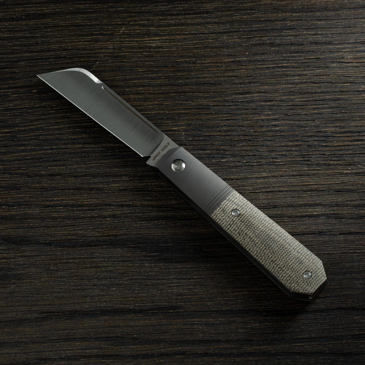 La Jack Wolf Knives Midnight Jack es una interpretación moderna de una navaja tradicional. El diseño de esta navaja es un tipo de Barlow estilizado. La base del mango, sin embargo, es angular. Los largos cabezales de titanio son una parte integral de los forros. Una elección fuerte y de primera calidad.