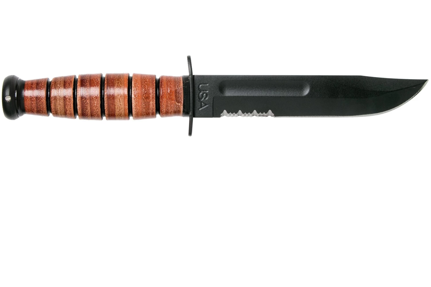 KA-BAR Short 1261 Cuchillo Fijo, Parcialmente Dentado, Funda De Cuero