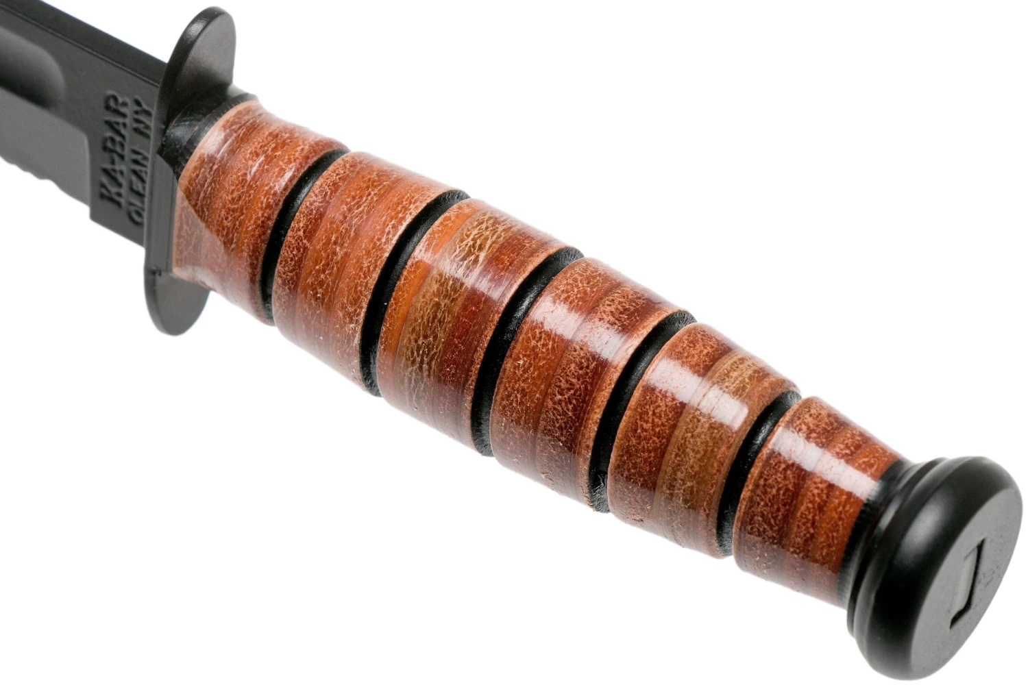 La KA-BAR Short USMC es una versión más pequeña de un legendario cuchillo fijo: la KA-BAR 1217. En 1942 este cuchillo fue utilizado por el Cuerpo de Marines de los Estados Unidos como cuchillo de combate estándar para los marines. Desde entonces, este cuchillo forma parte del equipo estándar de muchos soldados. El cuchillo es grande y muy fuerte. El mango está reforzado con un protector de cuchillos para asegurar que no acabes en el filo y te cortes durante el uso intensivo. La hoja está hecha de acero al carbono 1095. Este tipo de acero no es resistente a la oxidación. Por suerte, la hoja está mejorada con un revestimiento negro para garantizar un mantenimiento mucho más fácil. El mango está hecho de anillos de cuero apilados. Cómodo para las manos, incluso cuando hace mucho frío.