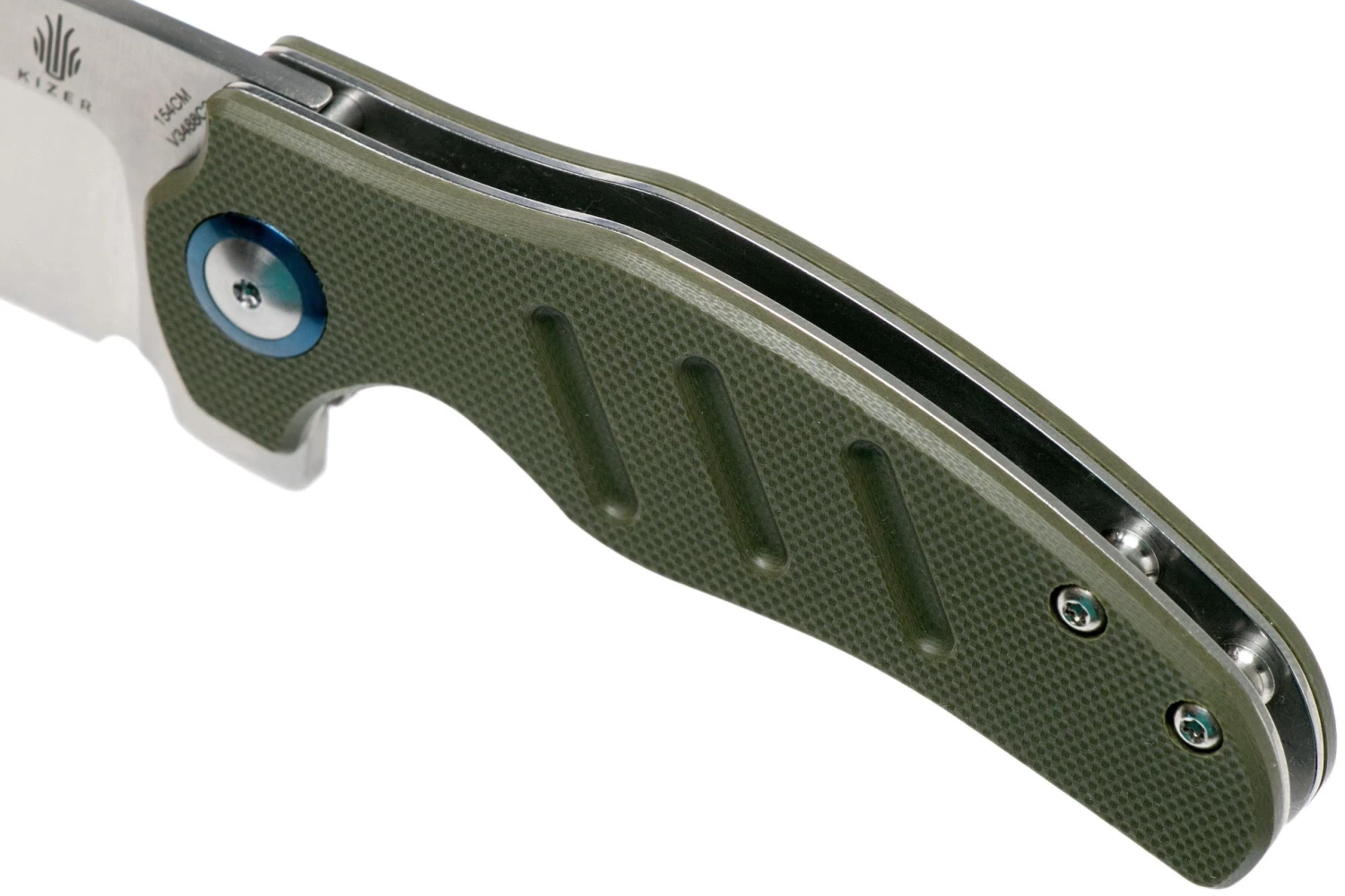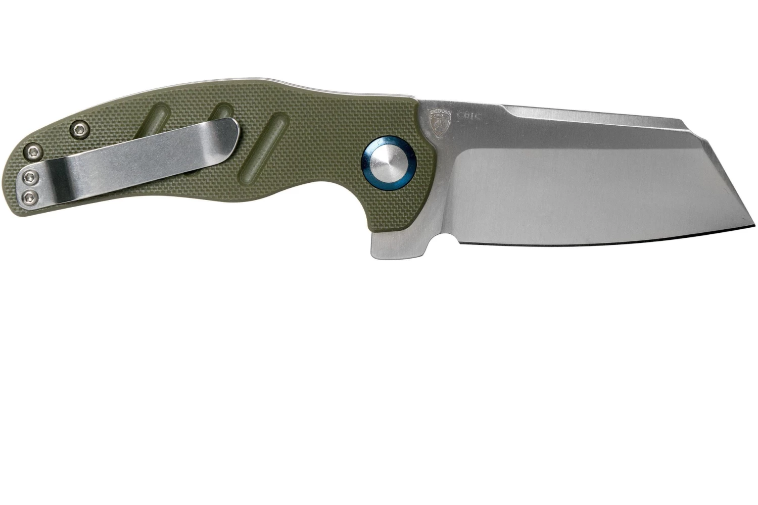 La Kizer Mini Sheepdog es una robusta navaja, diseñada por Chris Conaway de Sheepdog Knives. Se trata de la versión más pequeña del primer Kizer Sheepdog, que, abierto, mide 19,6 cm. Las proporciones de la hoja y el mango son sorprendentes. La hoja parece enorme en comparación con el mango «normal». Esto hace que la hoja sheepsfoot pueda parecerse un poco a una hacha de carnicero. Una hacha de carnicero de bolsillo.