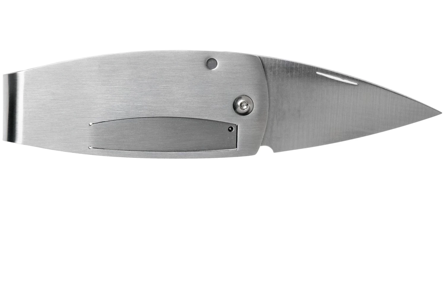 El Mcusta MC-0083 Pocket Clip Kamon Crane es un interesante cuchillo de caballero. Es único dentro de la gama Mcusta. Los cuchillos de la serie Pocket Clip Kamon tienen un mango hecho de una sola pieza de acero, que se ha doblado para crear un clip de bolsillo. Esto te permite llevar fácilmente el cuchillo en el bolsillo o atado a tu corbata como un pasador de corbata. ¡Muy elegante! La hoja de acero AUS-8A se abre con el nail nick y, a continuación, un cierre linerlock, integrado en el mango, mantiene la hoja en su lugar.
