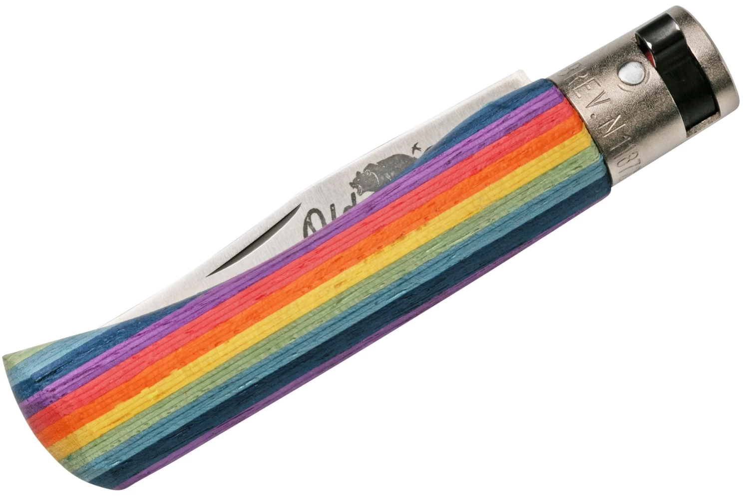 La Old Bear Classical Rainbow S es una navaja clásica de Italia. La hoja se abre fácilmente con la uña. Lo haces con las dos manos. Por ello, el cuchillo puede llevarse legalmente en casi toda Europa. El cuchillo se bloquea tanto cuando está abierto como cuando está cerrado. Es el resultado de un mecanismo Lupo-lock, un bloqueo de anillo que hemos visto en marcas de cuchillos similares pero que puede ser controlado con una sola mano.