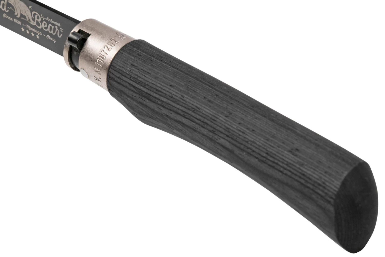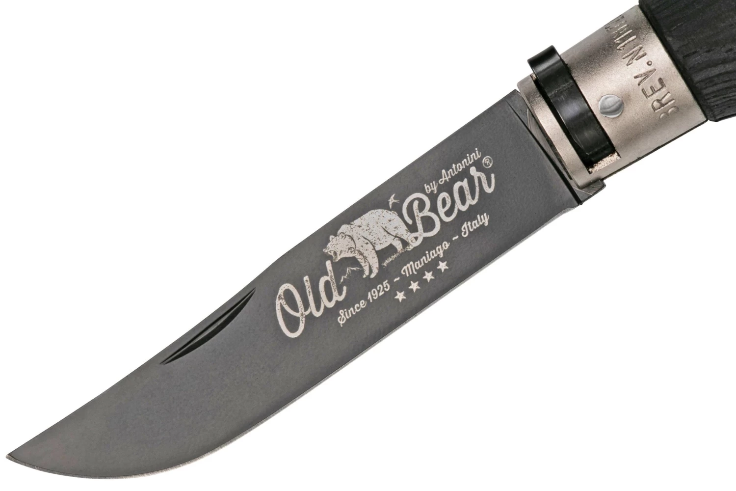 La Old Bear Classical Total Black XL es una navaja clásica de Italia. La hoja se abre fácilmente con la uña. Lo haces con las dos manos. Por ello, el cuchillo puede llevarse legalmente en casi toda Europa. El cuchillo se bloquea tanto cuando está abierto como cuando está cerrado. Es el resultado de un mecanismo Lupo-lock, un bloqueo de anillo que hemos visto en marcas de cuchillos similares pero que puede ser controlado con una sola mano.