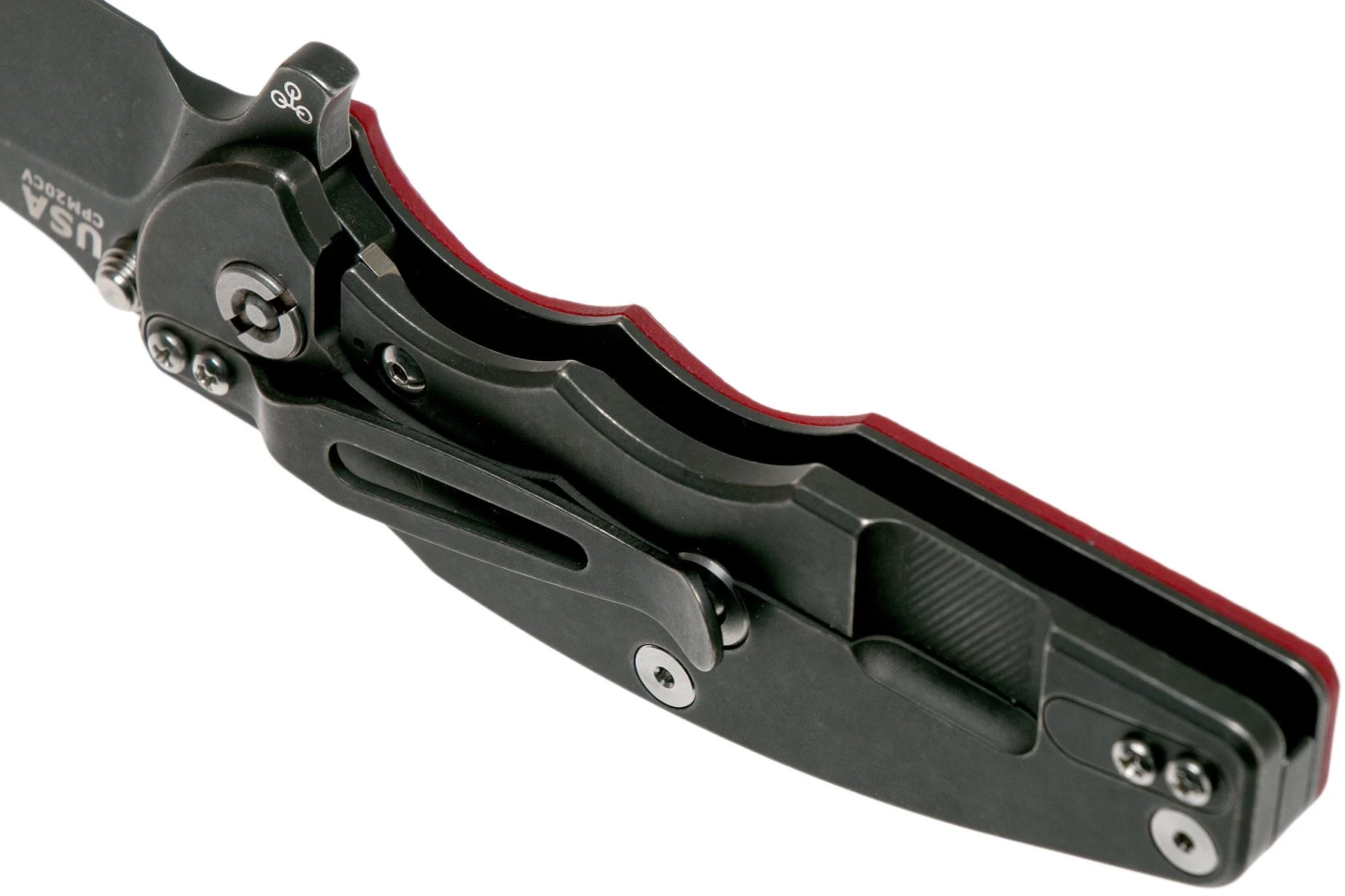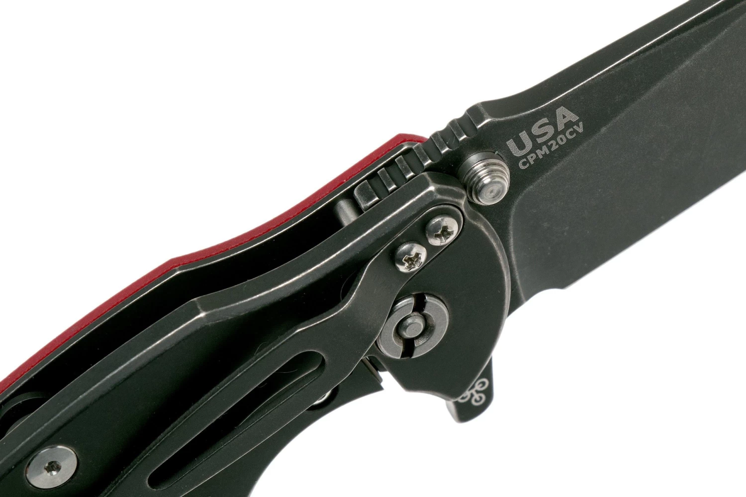 Rick Hinderer Jurassic Slicer Battle Black, Red G10 CPM 20CV Navaja