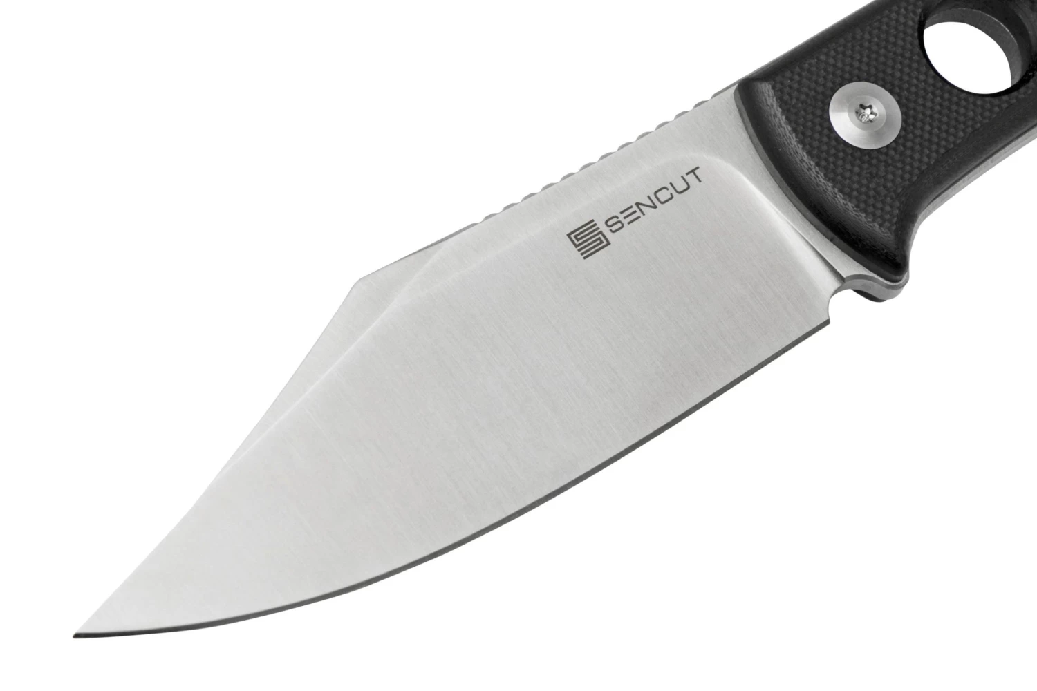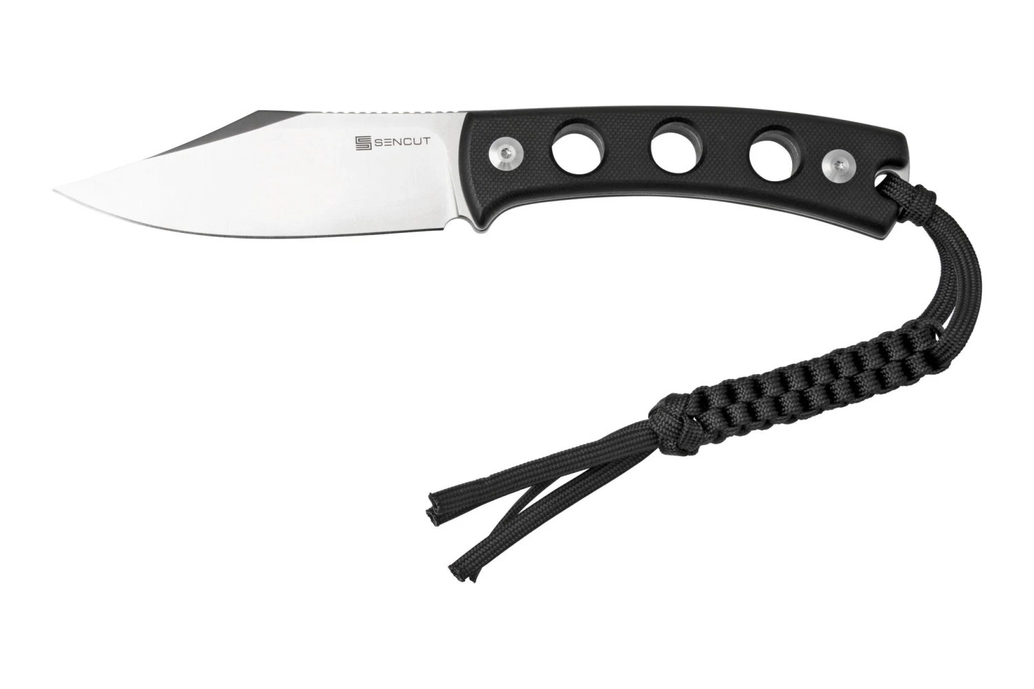 El SENCUT Waxahachie es un moderno cuchillo fijo de Sencut. Se trata de un cuchillo de hoja entera, apto para todo tipo de propósitos de corte. Los recortes en el mango mantienen el peso bajo y también proporcionan un agarre adicional. Los dedos se apoyan en los agujeros y alrededor de ellos. El lomo de la hoja de punta de clip tiene un reborde. Esto proporciona mucho agarre y control sobre la hoja. El Waxahachie viene con un bonito cordón y una robusta funda de kydex. Esta funda permite llevar el cuchillo en el cinturón, tanto en vertical como en horizontal.