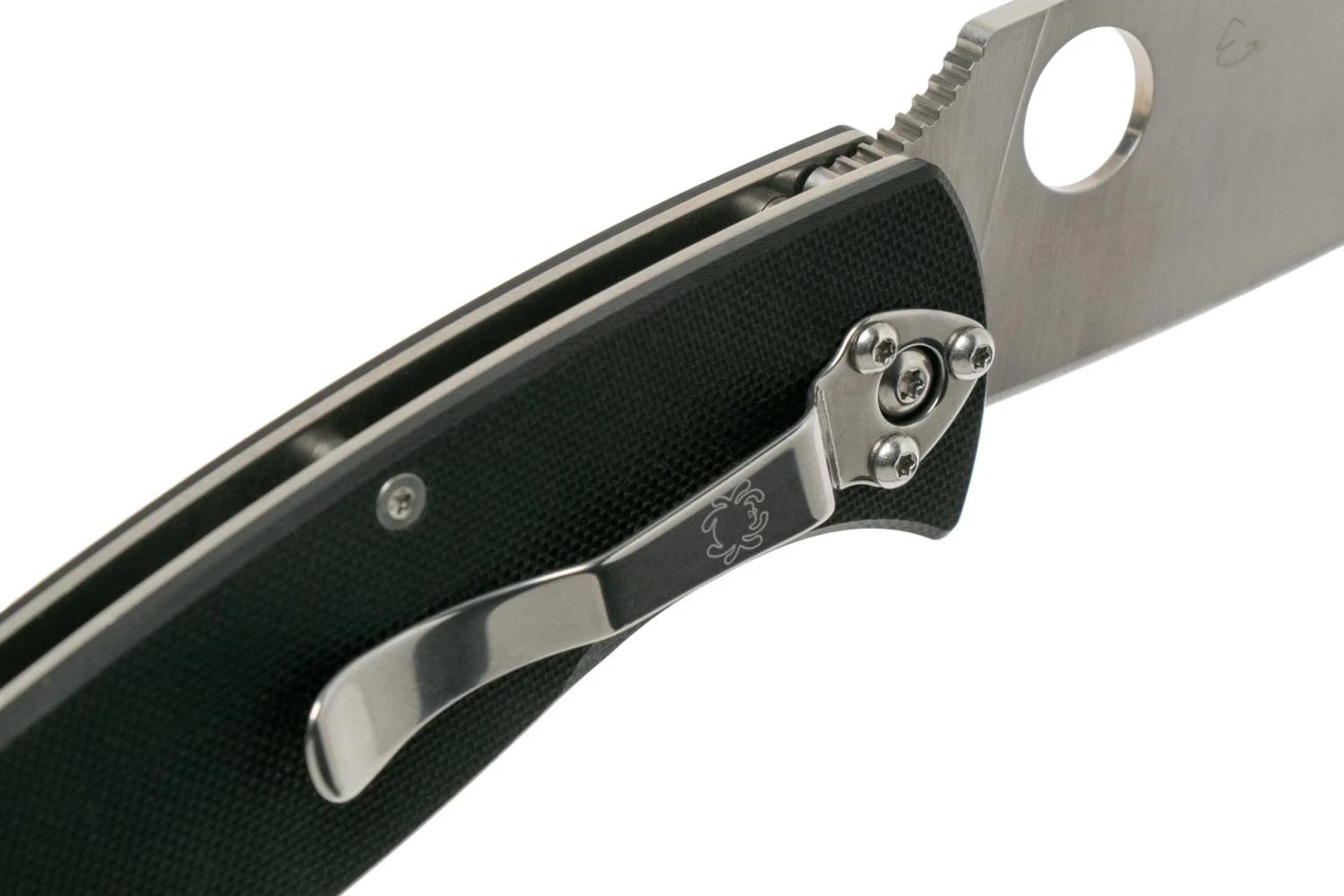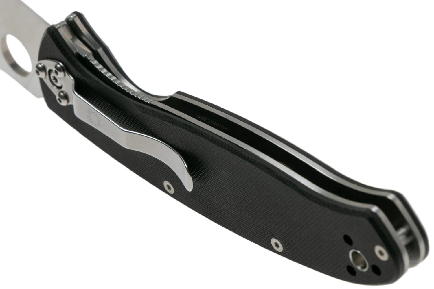 Navaja extremadamente robusta de Spyderco. El modelo Resilience es algo más grande que la Tenacious. Este cuchillo cuenta con una sólida hoja de 10,8 cm de acero inoxidable 8Cr13MoV. Las cachas del mango G10 contienen revestimientos de acero inoxidable.