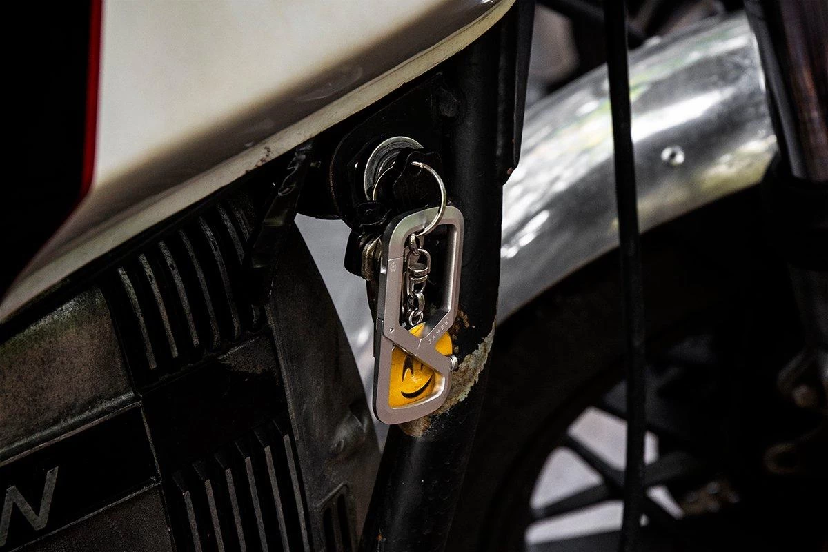 El James Brand Mehlville es un mosquetón de titanio sólido que será el compañero perfecto para tus llaves o herramientas. El Mehlville se abre fácilmente empujando el mosquetón hacia dentro. Una vez que las llaves están en su sitio, puedes volver a empujar el mosquetón hacia dentro. Así, las llaves se desplazarán hacia la segunda parte del mosquetón, donde estarán seguras y no se caerán fácilmente. Este mosquetón también está mejorado con un innovador abridor de botellas con un disco de acero intercambiable. Este disco de acero se fija al mango con un tornillo y, si es necesario, puede cambiarse. Como este disco está hecho de acero inoxidable endurecido, no se desgastará tan rápidamente como el titanio. ¡Práctico si quieres abrir una botella al final del día!