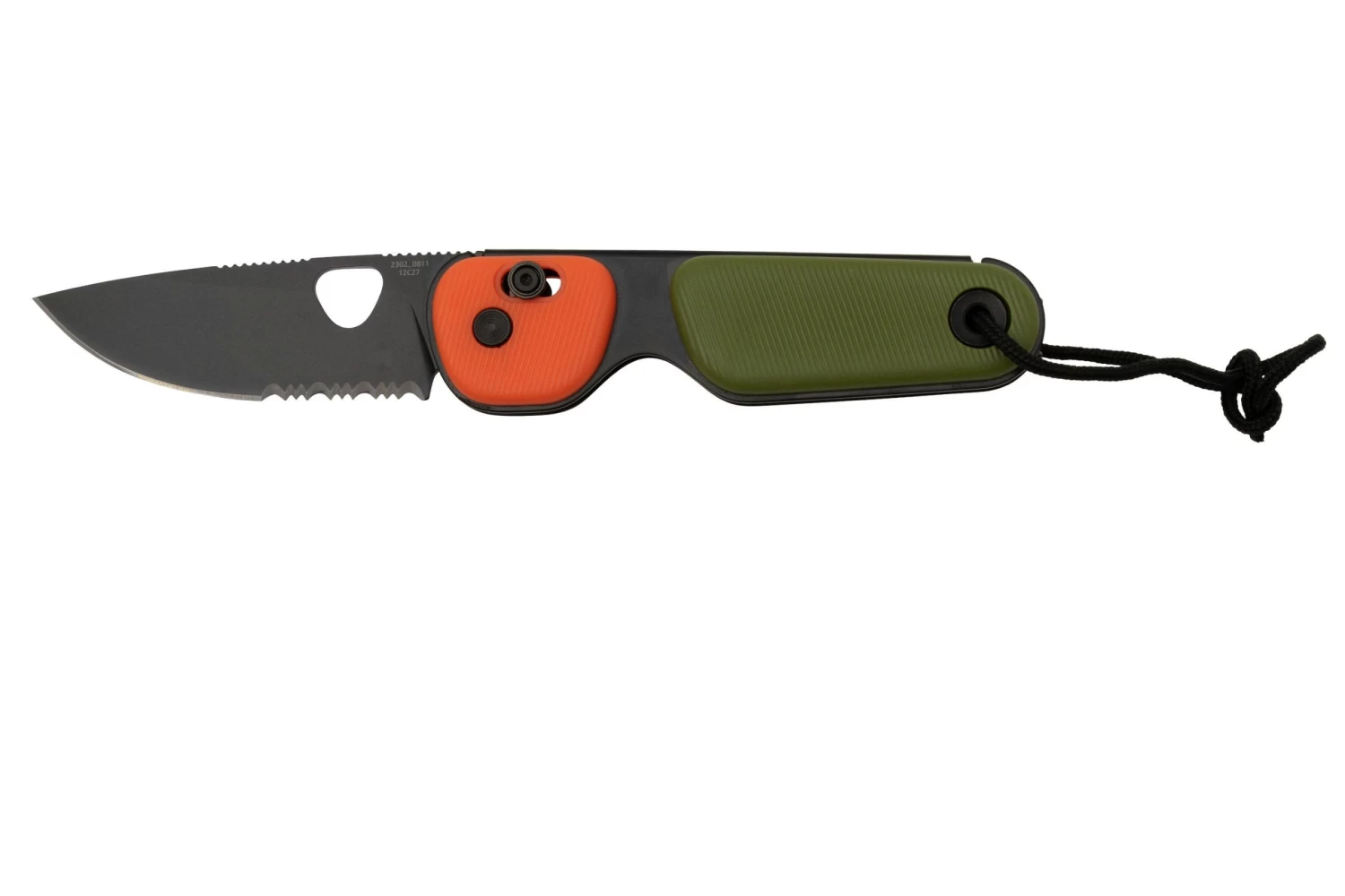 The James Brand The Redstone, OD Green + Orange PP, Negro, Serrated, KN118197-01, Navaja