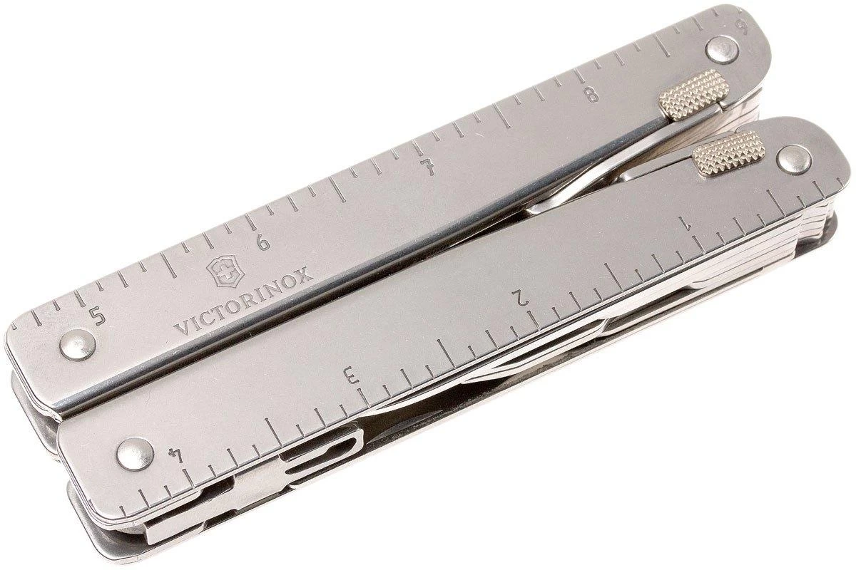 La Victorinox SwissTool X Plus es una multiherramienta suiza con un diseño ergonómico y nada menos que 37 funciones. Completamente fabricada en acero inoxidable y pulida. La SwissTool viene con una funda de cuero con presilla para el cinturón. Con esta sólida funda podrás colgar fácilmente la SwissTool en tu cinturón. El cierre es de velcro y, por tanto, fácil de abrir.