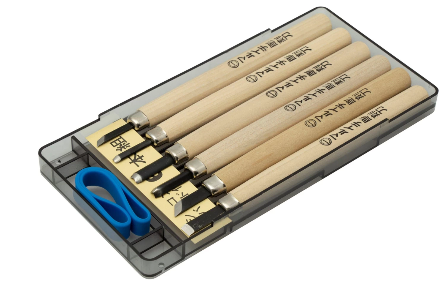 Yoshiharu KL-6 Maruichi Cuchillos Japoneses Para Tallar Madera, Juego De 6 En Estuche De Plástico